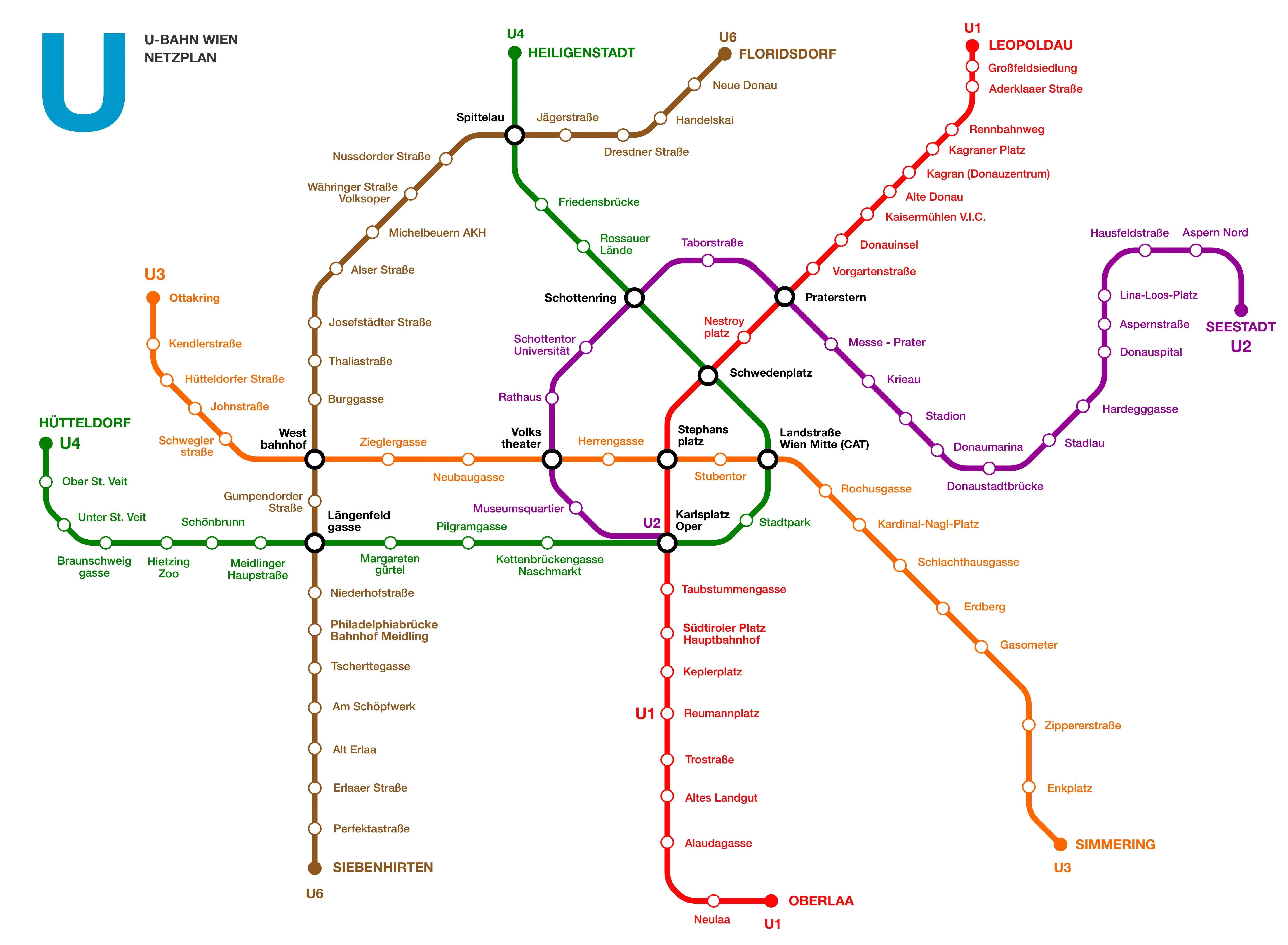 Die Linienzeichnung U5 existiert nicht, während die Nummerierung des U-Bahnsystems durchgängig von U1 bis U4 läuft, trägt die fünfte und letzte Linie den Namen U6.